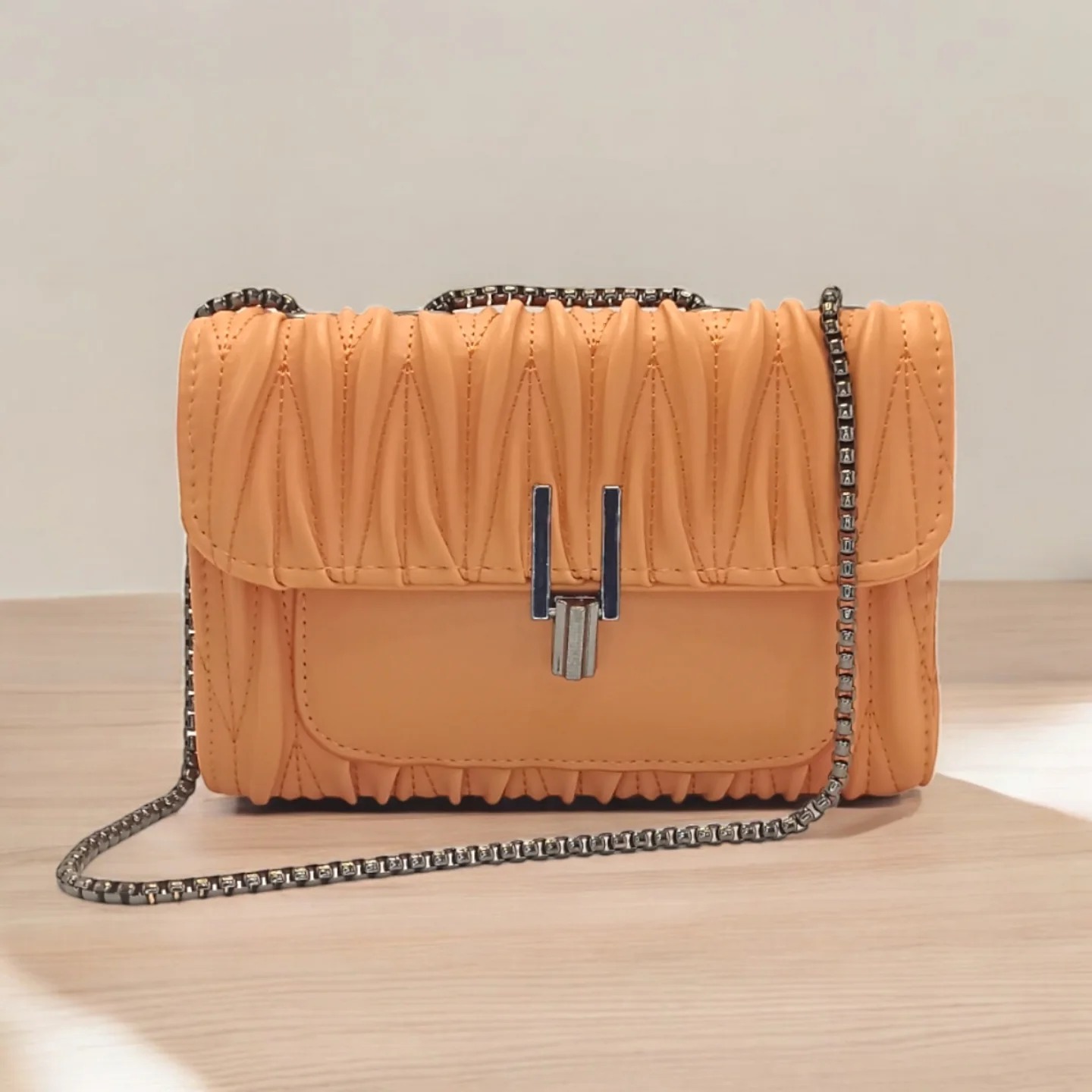 Bolsa Baú Em Matelassê Estruturada Alça Transversal De Corrente U / laranja BCB266