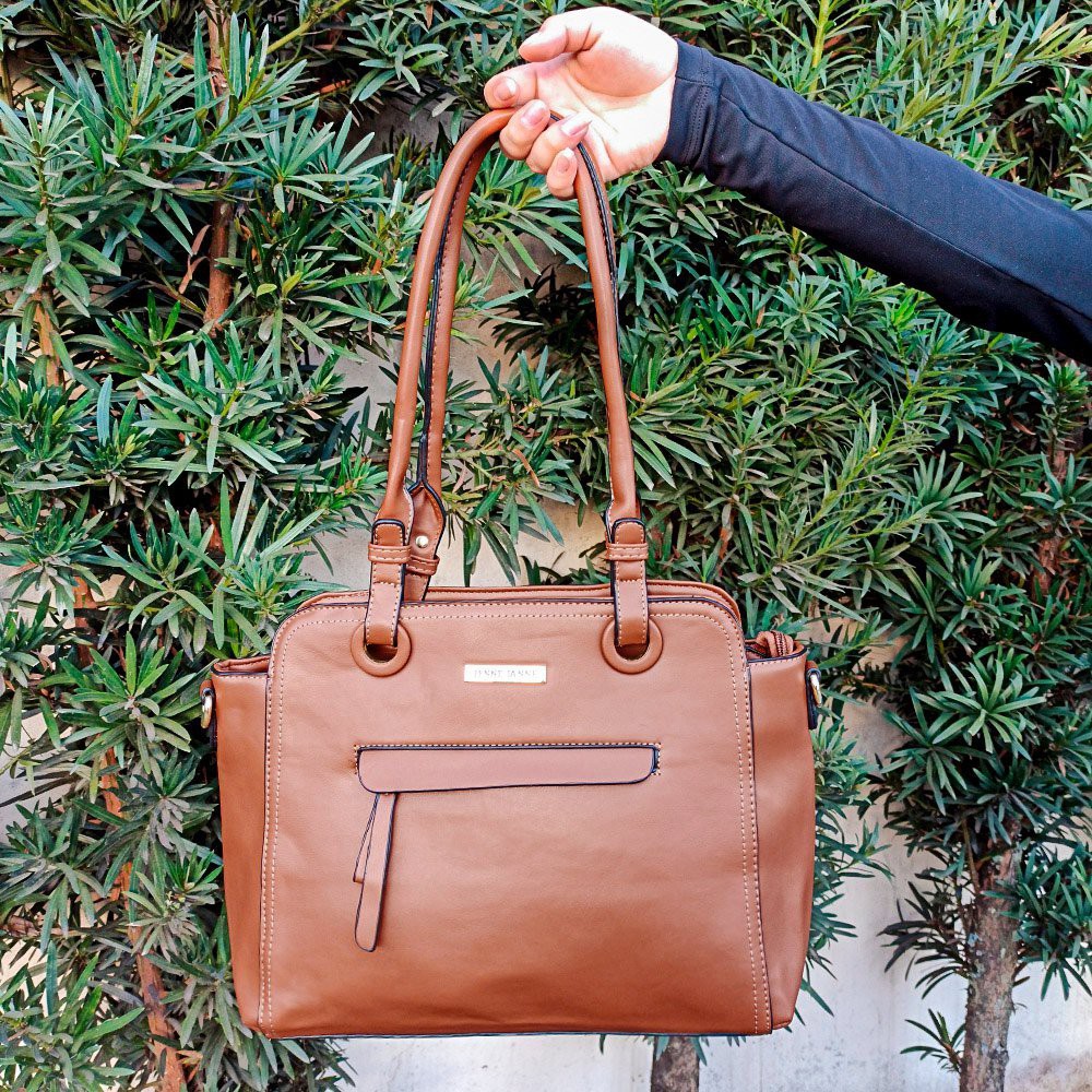 Bolsa Totem Estruturada Feminina Detalhes Metálicos Alça Dupla MARROM ESCURO LC025 BCB275