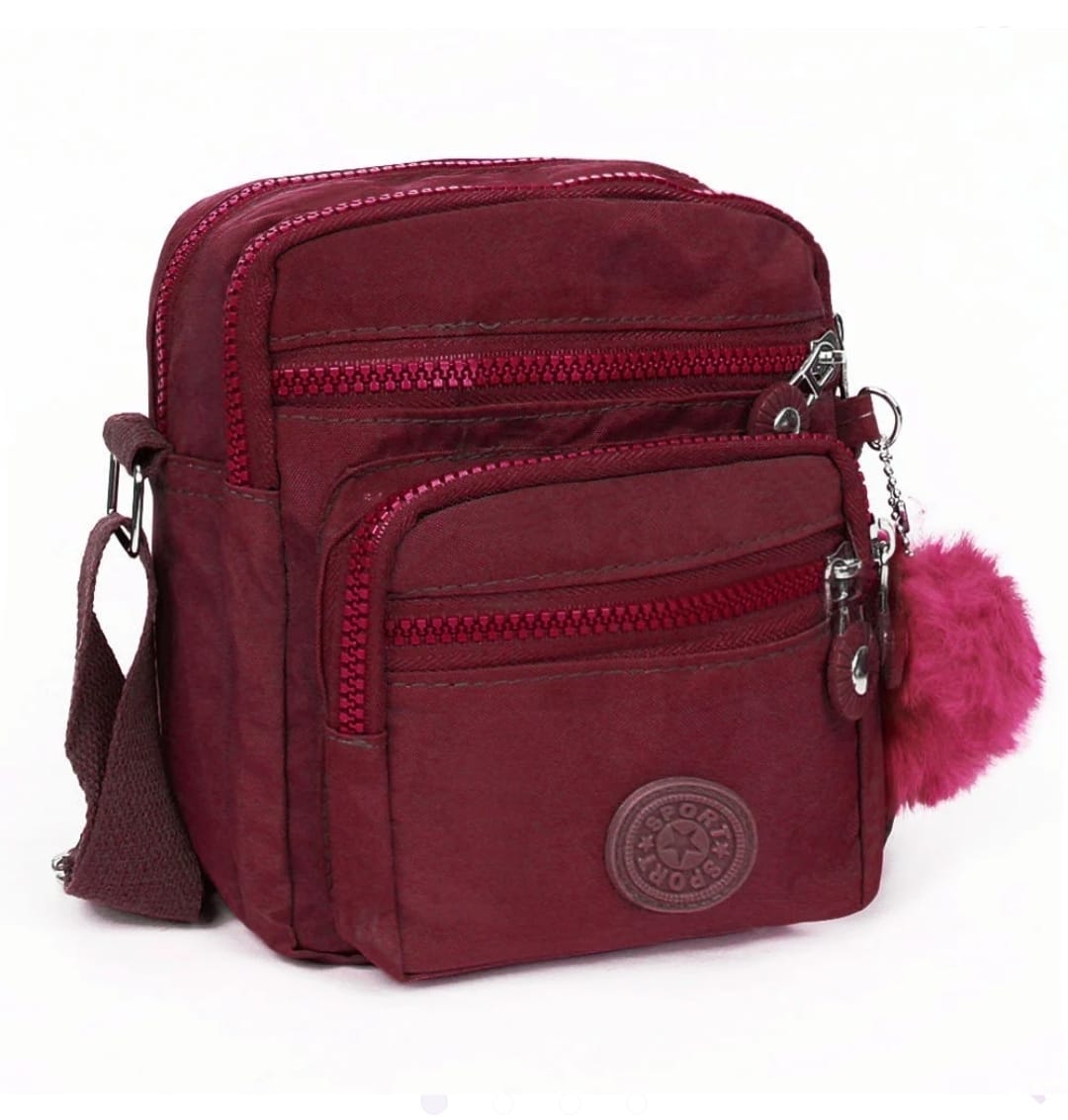 Bolsa Transversal Mini Bag De Nylon Com Pompom U / VINHO