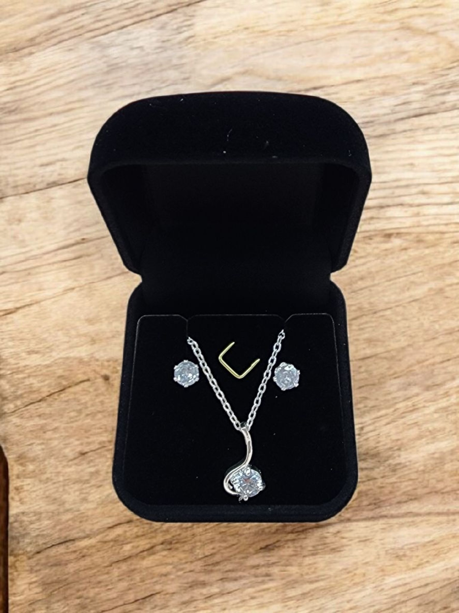 Conjunto colar e brincos prata 925 com detalhe em zircônia BCJ403