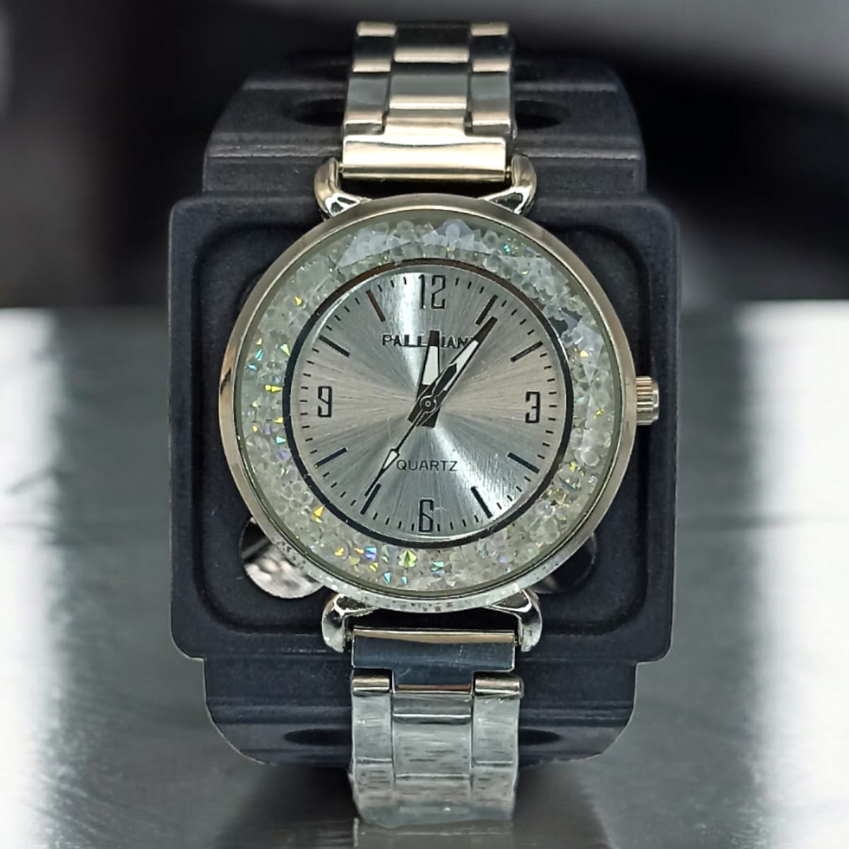 RELOGIO FEMININO PRATEADO C/ STRASS PALLYJANE BCR121
