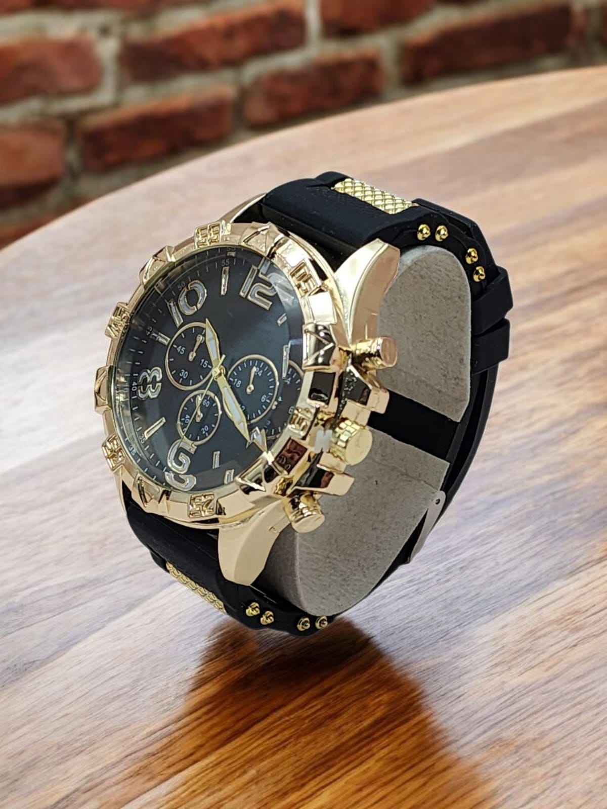 O Relógio Masculino Preto Com Dourado Correia Silicone BCRM118 da marca Pallyjane é a escolha ideal para homens que buscam um acessório que una estilo e funcionalidade. Seu design digital, com caixa na cor preta e detalhes em dourado, confere uma aparência sofisticada que se destaca em diversas ocasiões. Com um peso leve de apenas 0,3 g, ele oferece conforto durante todo o dia.
