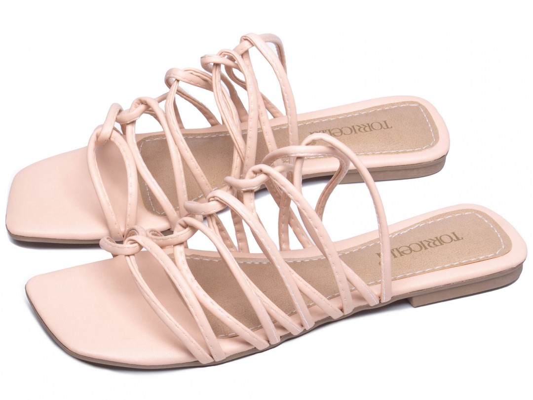 Material: Napa Organza; Enfeite: Tiras finas entrelaçadas em Napa Organza; Palmilha: 4 mm de Espessura, Espuma em EVA, Revestida em Napa Organza; Solado em PVC Flexível com antiderrapante e na cor Bege.